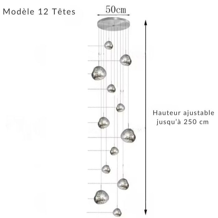 Suspension effet miroir 10 têtes en verre chromé, idéale pour créer un effet design artistique.