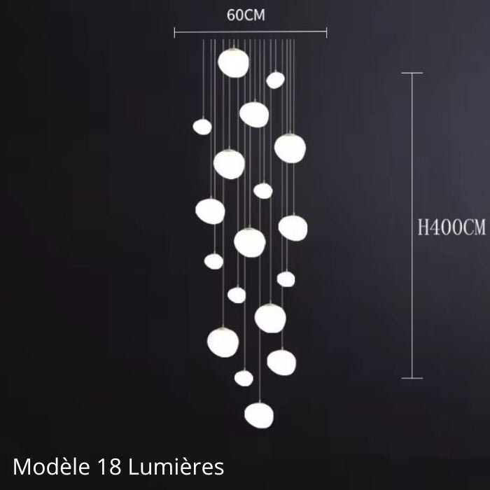 Suspension boule design pour escalier moderne – Modèle 8 lumières hauteur 200 cm